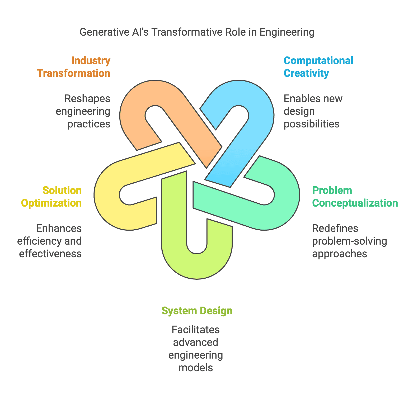 Generative AI transforms engineering by redefining problem-solving, enhancing computational creativity, optimizing solutions, and reshaping industries through advanced system design.